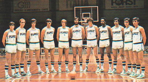 Tombolato a Cantù con la maglia #16 al centro (quinto da sinistra a partire dal giovane Charly Recalcati)