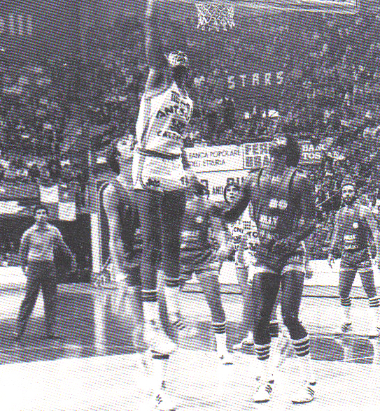 Grande e storica prova in Coppa Korac. Non andiamo in semifinale; ci andrà il Barcellona (che vincerà la Coppa) dopo averlo battuto in casa (87/71), in una serata nevosa, e dopo essere stati battuti dagli arbitri con la differenza di 1 punto a Barcellona.